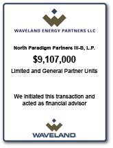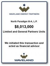 North Paradigm III Drilling Program is a series of limited partnerships sponsored by Waveland Energy Partners LLC, whose primary objective is the creation of income through the production and sale of oil and natural gas. Waveland has entered into an agreement with New Dominion, L.L.C. to jointly exploit New Dominion’s approach to development and production of bypassed high water saturation oil and gas reservoirs in Central Oklahoma. As a result of New Dominion’s success, the company has become one of the fastest-growing producers of oil and natural gas in Oklahoma. The Partnerships will participate in the continuing development of New Dominion’s existing well inventory on the North Paradigm Project in Pottawatomie County, and Seminole County, Oklahoma.