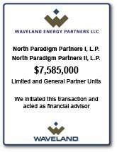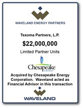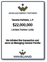 In March 2007, Texoma Partners, L.P. (the “Fund”), a leasebank and pipeline investment fund managed by Waveland Energy Ventures LLC, acquired a 60% working interest in 35,000 leased net mineral acres in the emerging Woodford Shale Play in southeastern Oklahoma (“Texoma” or the “Project”) from Oracle Resources, Ltd. (“Oracle”), an independent oil and gas company based in Dallas, Texas.