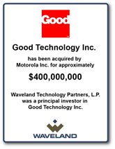 On November 10, 2006, Motorola (NYSE:MOT) and Waveland Technology Partners, L.P. ("WTP") portfolio company Good Technology announced that Good would be acquired by Motorola. We expect that the transaction, which should close in January 2007, will result in a cash distribution to WTP investors of over $1,650,000, or approximately 17% of originally invested capital.