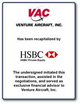 Venture Aircraft, Inc. is a leading manufacturer of precision crafted sheet metal, machined components, kits and subassemblies for the aerospace industry. It specializes in complex, flight-critical control assemblies that contain a large number of precision machined parts. The Company's products go into some of America's highest performing commercial and military aerospace vehicles including the entire family of Boeing commercial jet airliners, most United States military airlift and fighter aircraft programs as well as many helicopter programs.