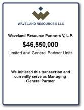 In addition to the substantial economic return potential to investors in the Fund, the Fund secured a valuable and unique opportunity for Waveland’s drilling fund investors to participate with Chesapeake in what is believed to be one of the highest potential shale-gas plays in the U.S.